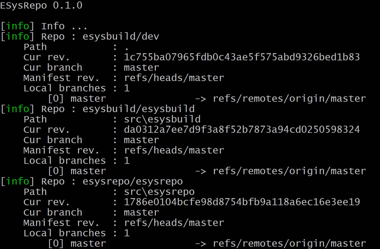 When ran while working on the ESysRepo SW, it looked like this, and for conciseness, we will show